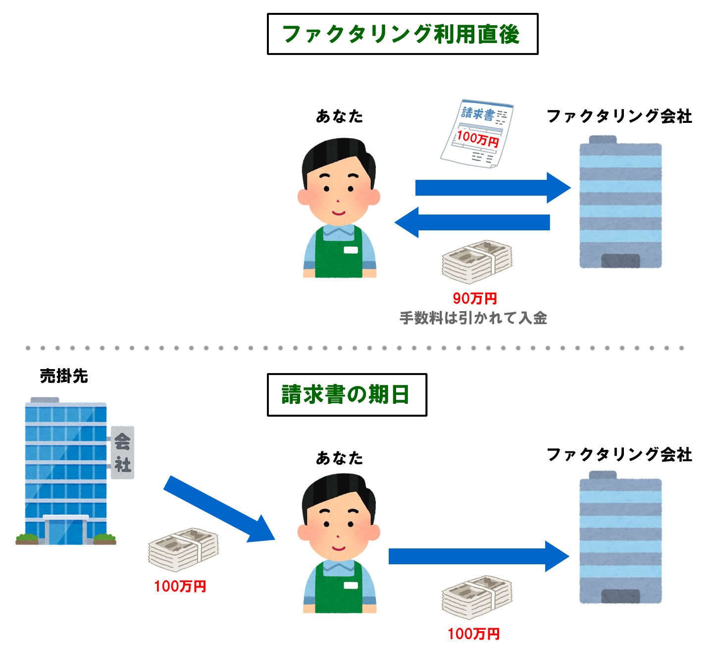 あなたが持っている「売掛金(まだ入金されていない請求書)」を、ファクタリング会社に買い取ってもらう「売買契約」になります。