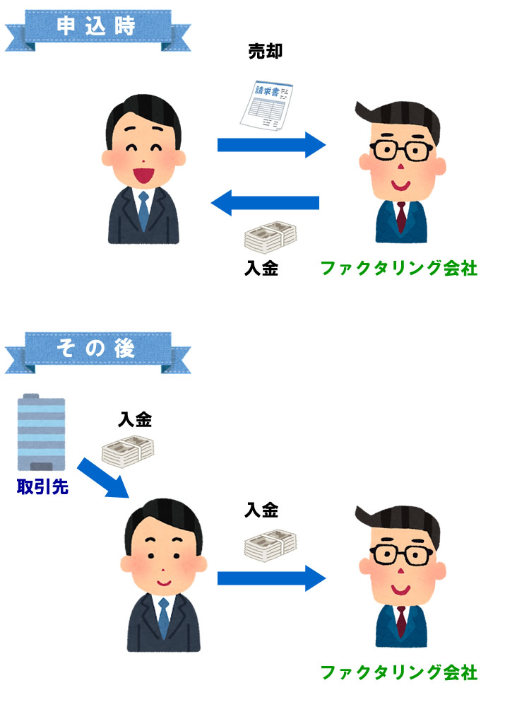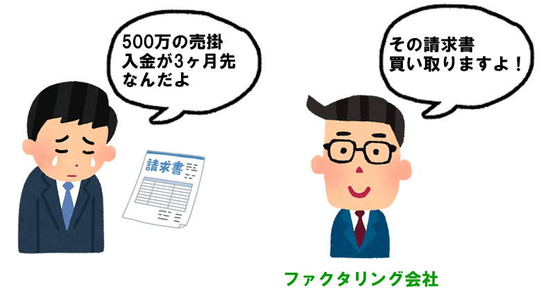 2ヶ月後、3ヶ月後の入金予定の請求書や、取引先の支払予定がある場合、この請求書を買い取ってくれるサービスです。