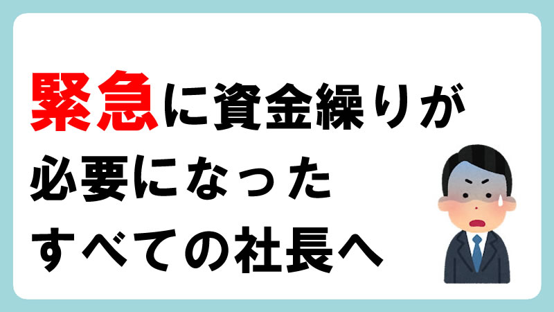 緊急に資金繰りが必要になったすべての社長へ、解決の方法があります